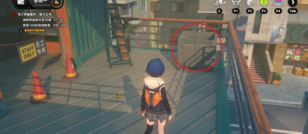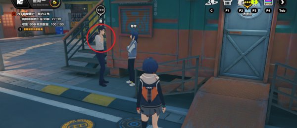 来到改装店,先与旁边的洛对话,之后从左边的楼梯上到2楼