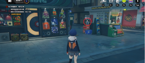来到玩具店,回头看,与玩具店对面的邦布对话